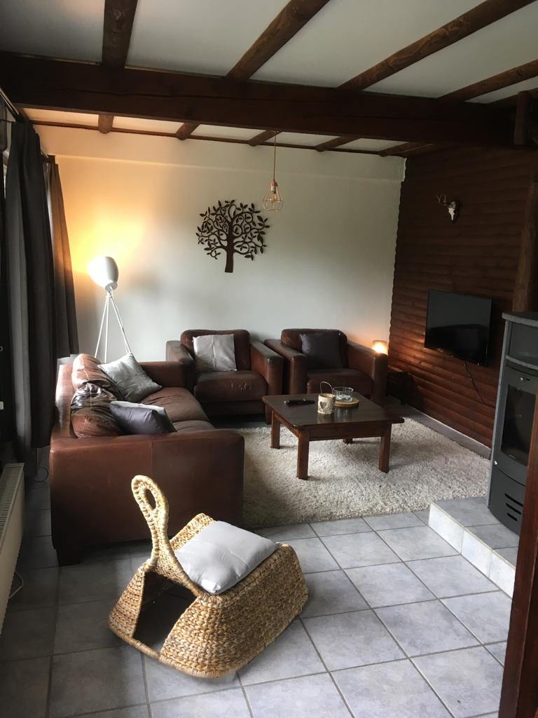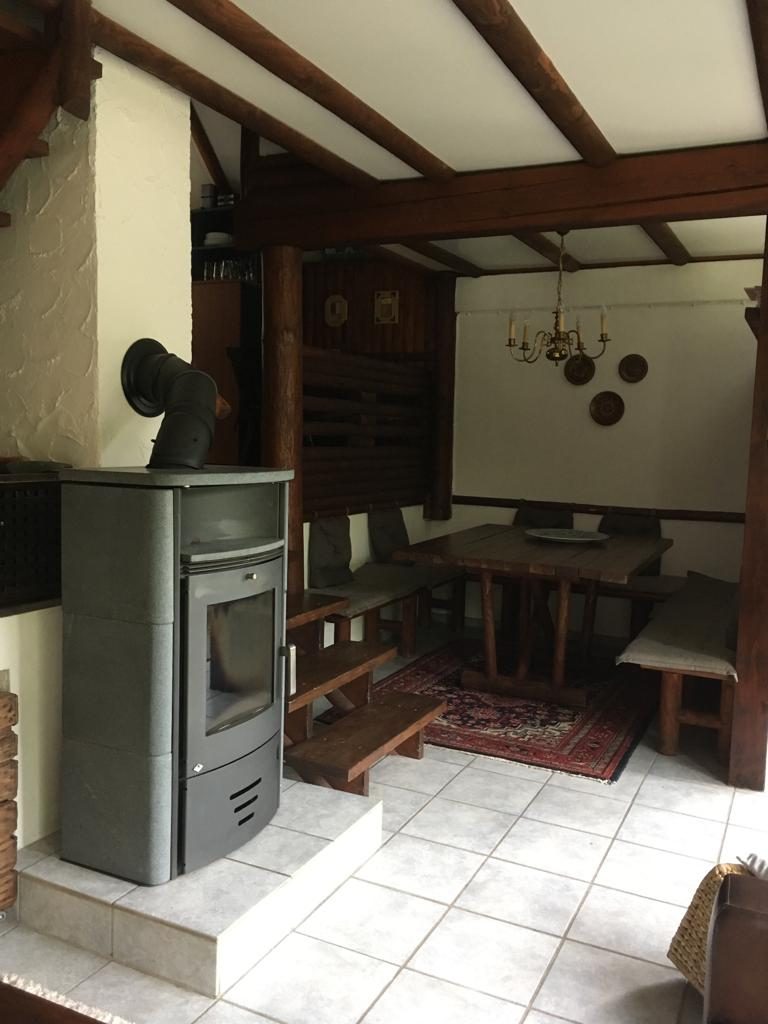 Het Hexenhuisje is gezellig en comfortabel ingedeeld en is van alle gemakken voorzien. Je komt binnen in de warme woonkamer waar de houtkachel centraal staat. Op de begane grond is een ruime zithoek rondom de houtkachel. Tevens is er een extra zithoek rondom de grote handgemaakte houten tafel, waar je met de hele familie kunt eten en spelletjes kunt spelen.